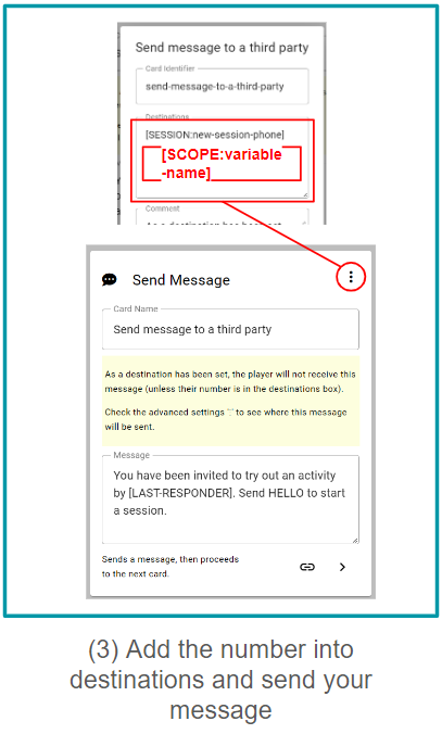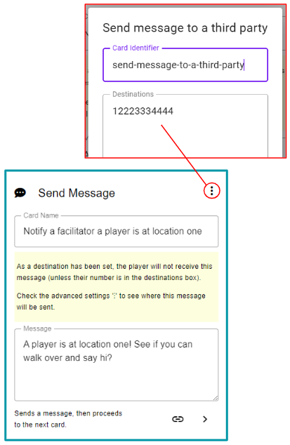 The new Destinations feature in the advanced menu of the Send Message card allows you to change where the message is going, without starting a brand new activity for the recipient.