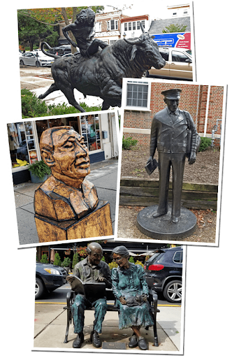 Some of the statues featured on the Haddonfield Sculpture Tour